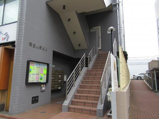 正面の階段を昇っていただきますと2Fに半分道楽の店舗があります。